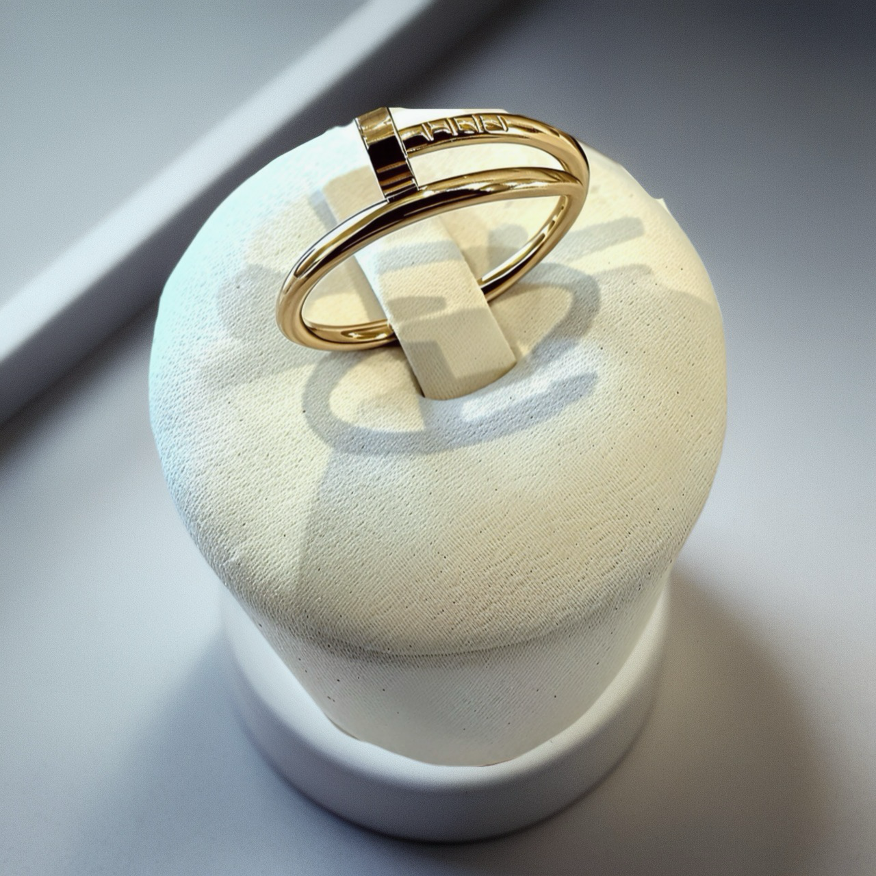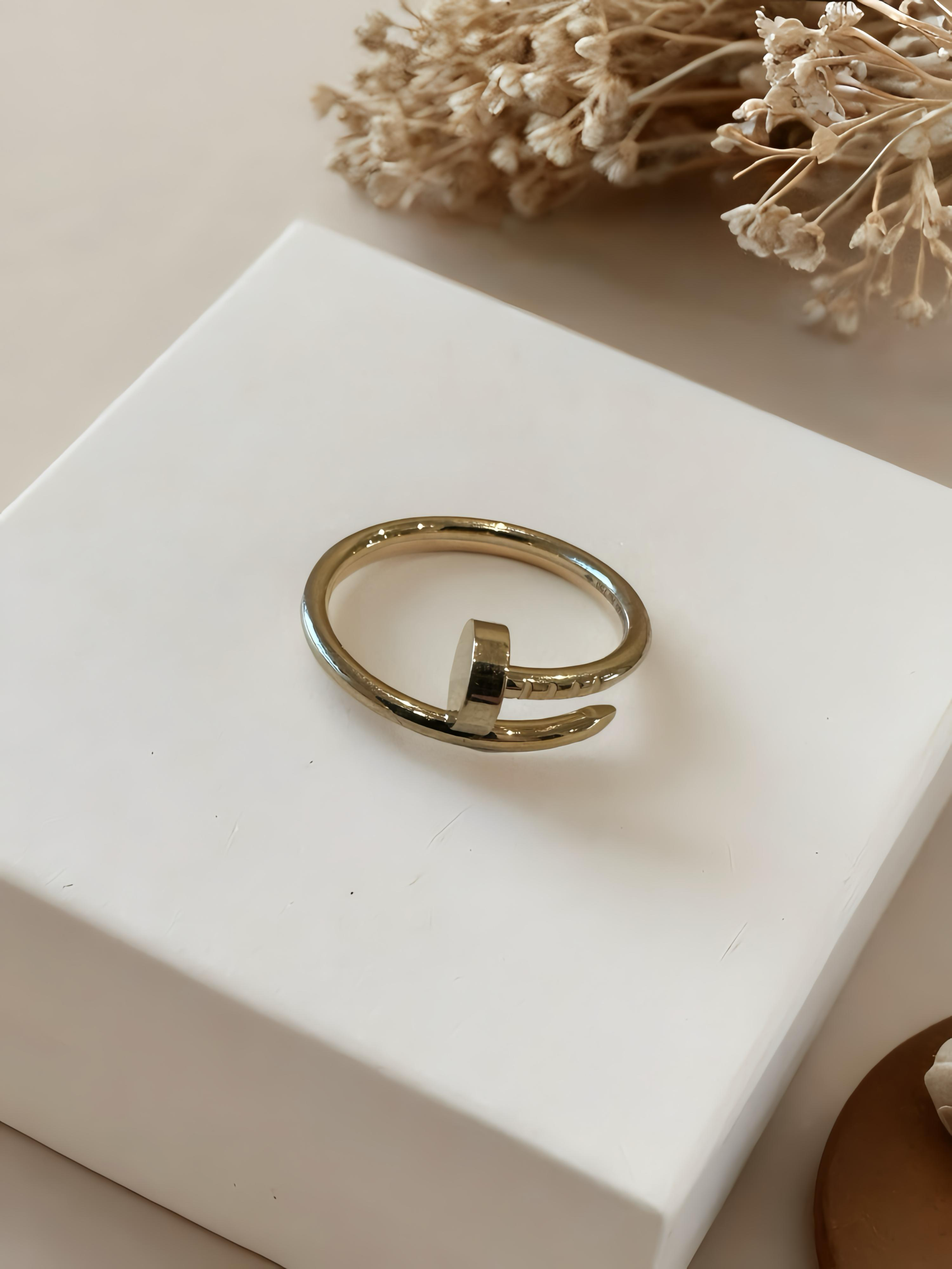 The Éclat Nail Ring is meticulously crafted in 18K gold, featuring a sleek wraparound design accented with pavé-set stones that capture light from every angle. Symbolizing strength and artistry, this ring embodies refined elegance with a contemporary edge — a timeless addition to any jewelry collection.