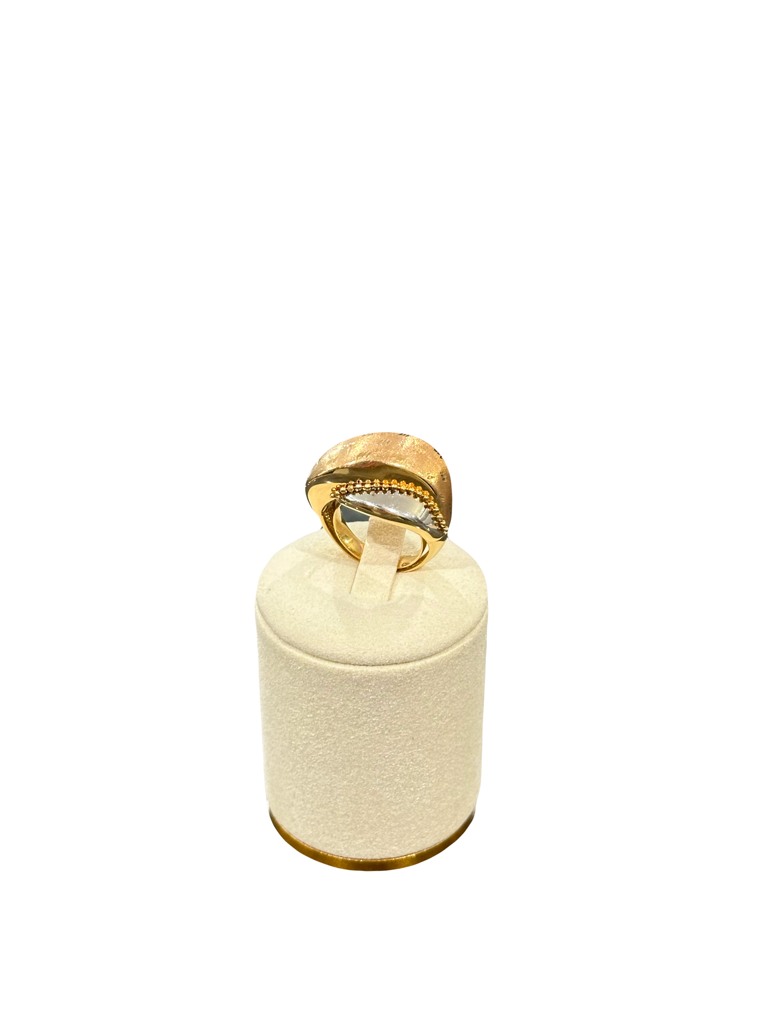 The Love Ring is crafted in 18K solid gold, designed with engraved screw motifs that symbolize enduring strength and connection. Its sleek, polished surface reflects a refined minimalism, making it a timeless statement piece that pairs effortlessly with any look — bold alone or layered in sophistication.